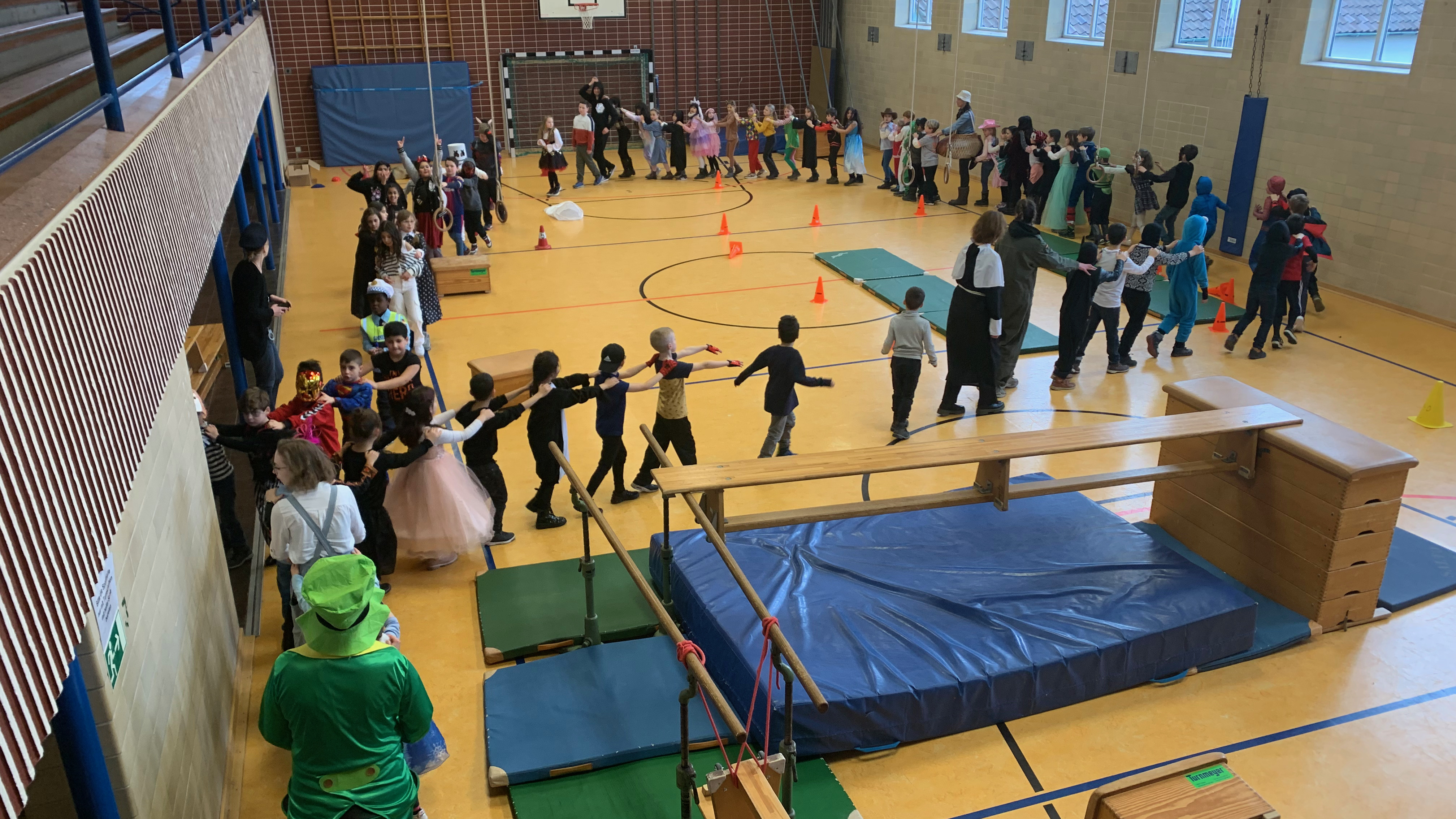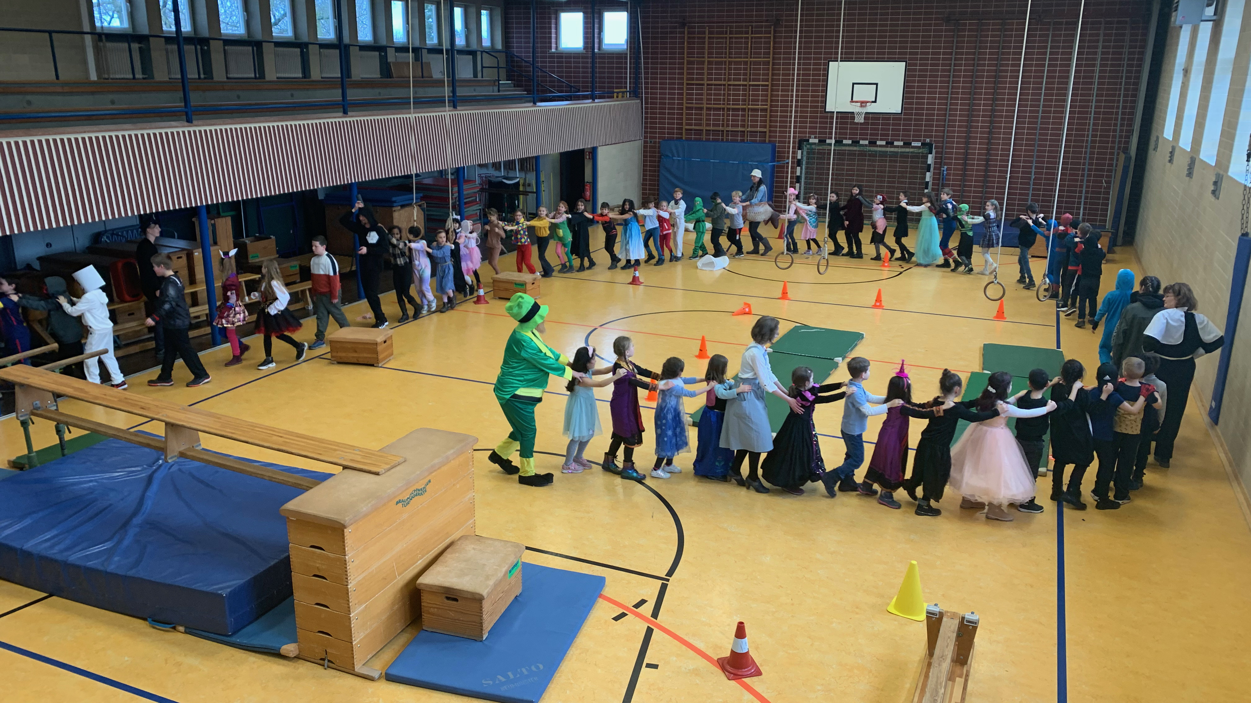 Wenn Darth Vader gemeinsam mit Elsa und Iron Man die Schillerschule besuchen, dann muss Rosenmontag sein. In ausgelassener Fröhlichkeit wurde im Klassenraum gefeiert, im Musikraum getanzt und in der Sporthalle geklettert. Zwischendurch zogen die Kinder in einer Polonäse durch das Schulgebäude.