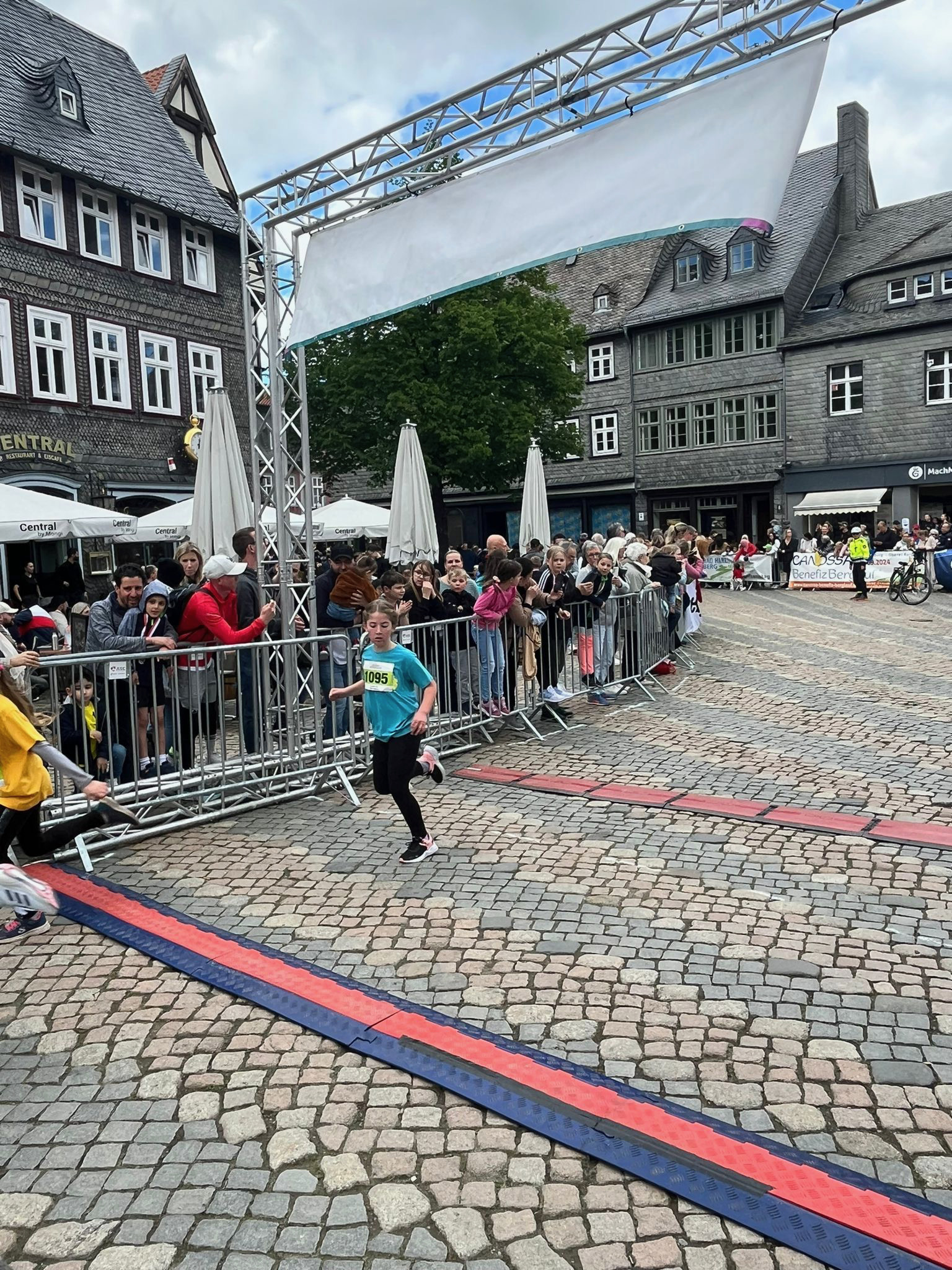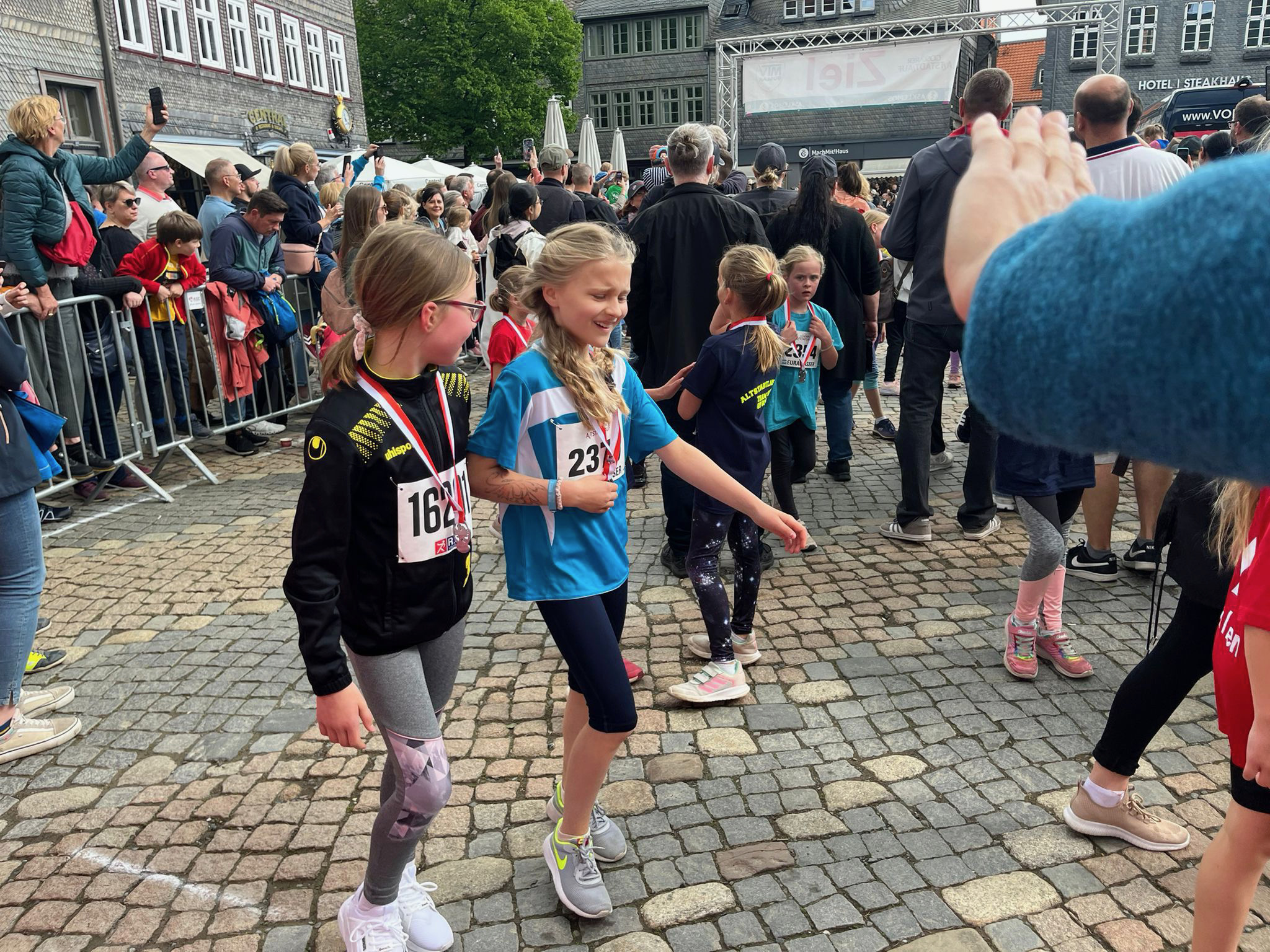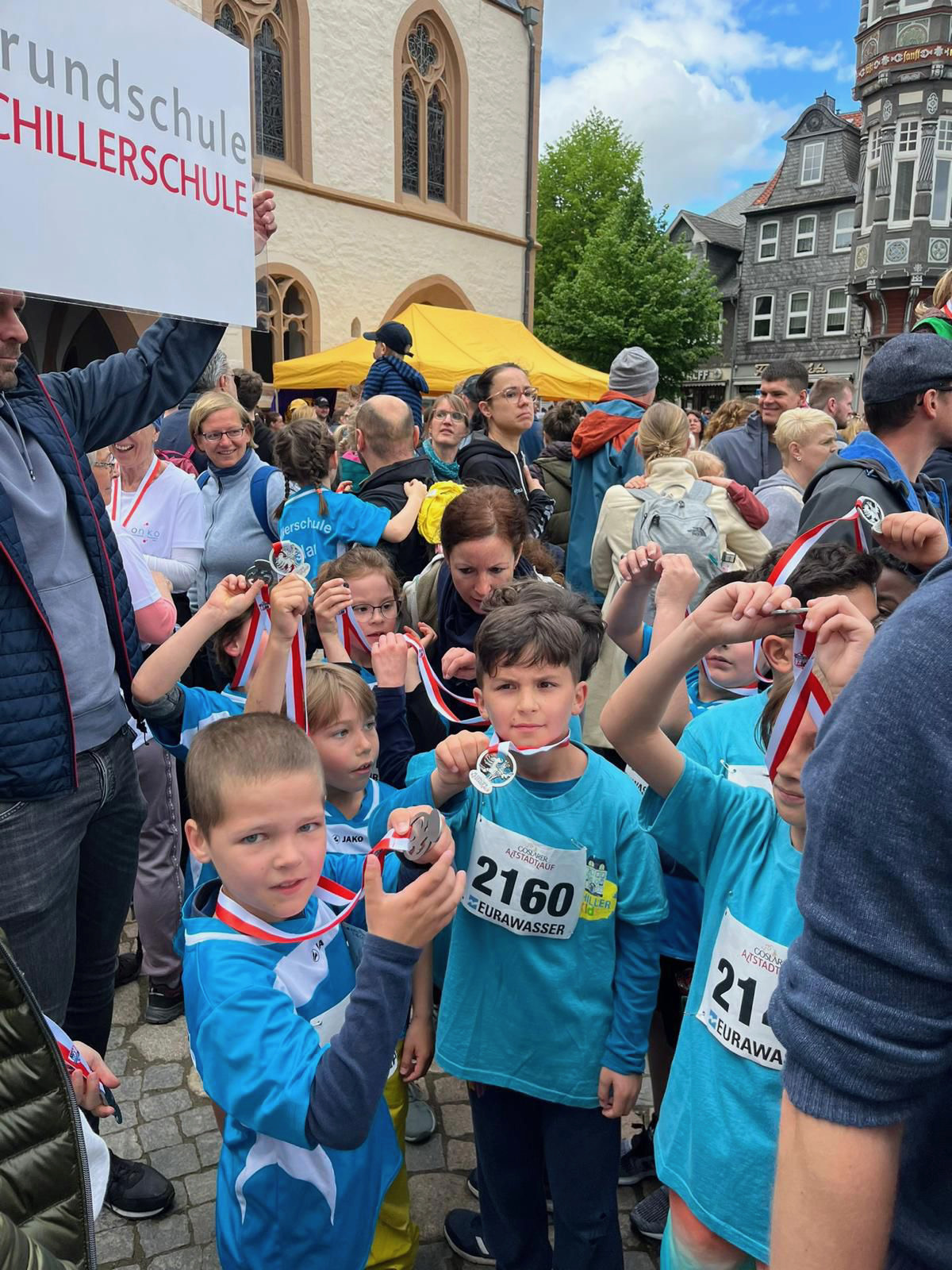 Faszinierend, was die Schüler der Schillerschule Goslar beim Altstadtlauf 2024 in Goslar geleistet haben. Mit teils hochroten Gesichtern, hämmernden Puls und außer Atem durchliefen die Kinder die Zielgerade auf dem Marktplatz. Unter der Aufsicht von Frau Kolle und mit Hilfe von Frau Busse und Frau Galante zeigten die Kinder eine tolle Laufleistung auf einer Strecke von 1 km oder 2,4 km.