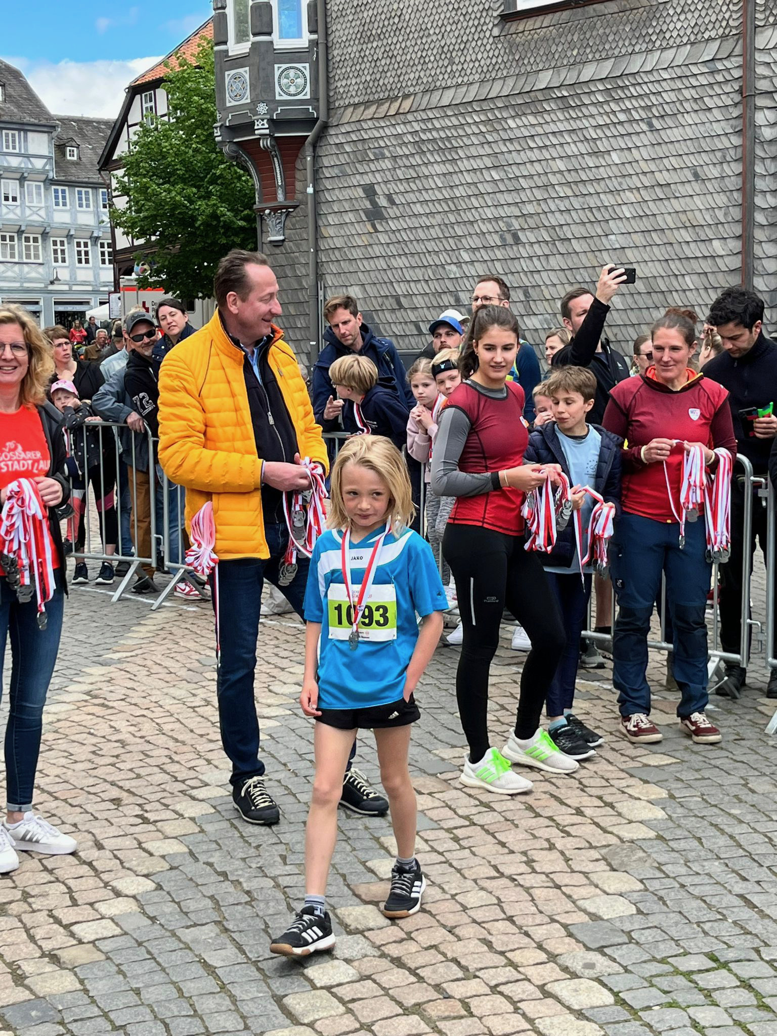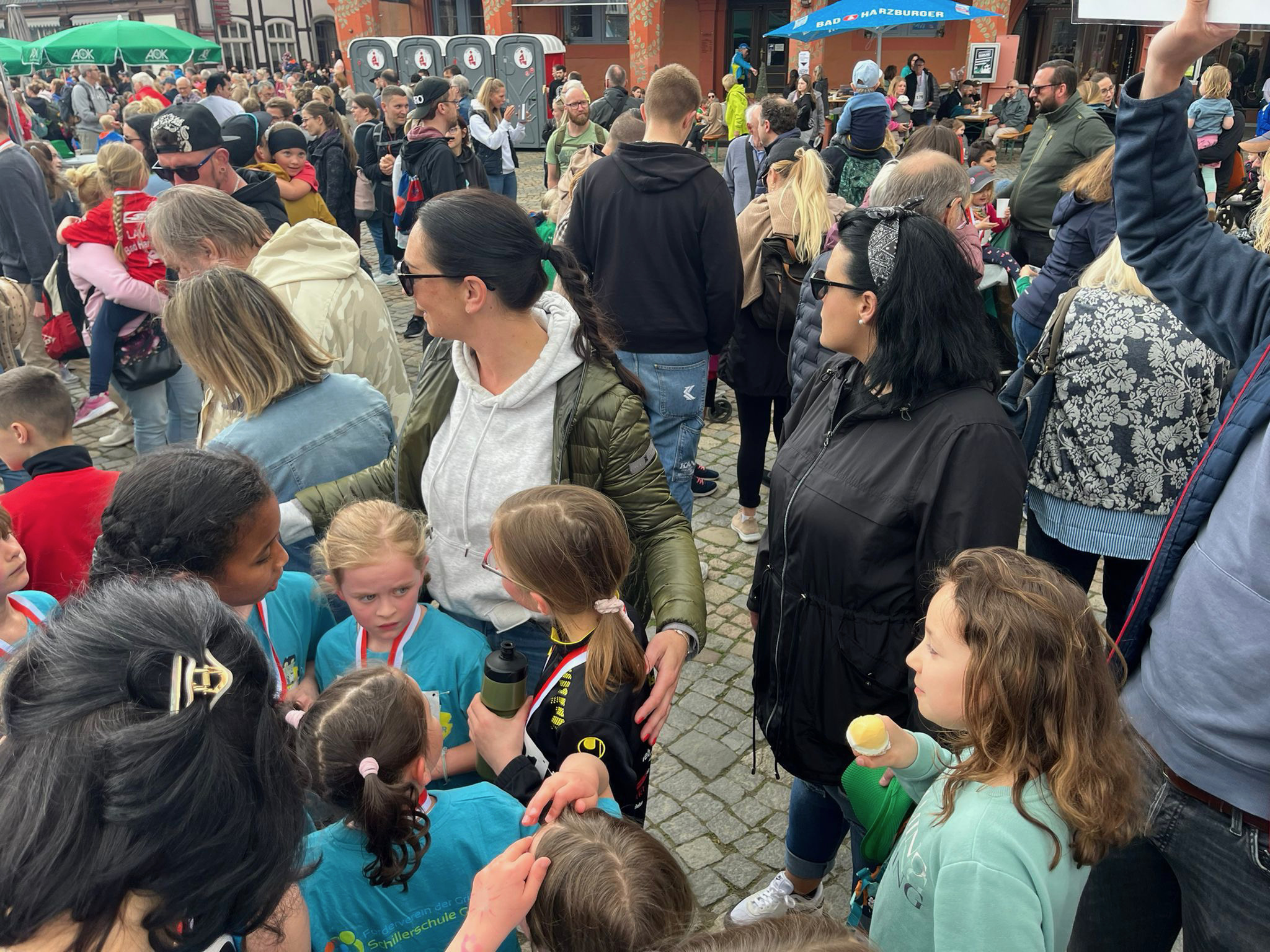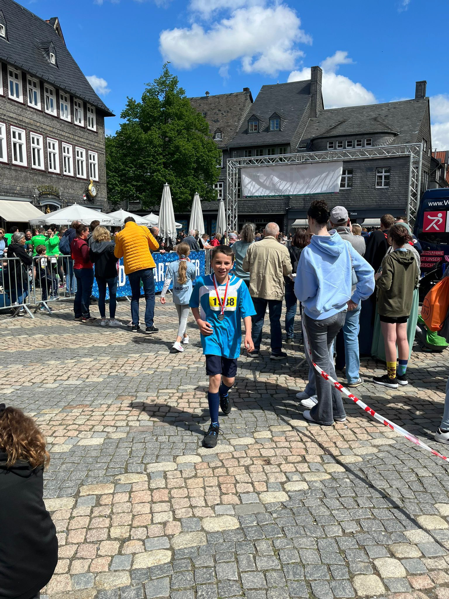 Faszinierend, was die Schüler der Schillerschule Goslar beim Altstadtlauf 2024 in Goslar geleistet haben. Mit teils hochroten Gesichtern, hämmernden Puls und außer Atem durchliefen die Kinder die Zielgerade auf dem Marktplatz. Unter der Aufsicht von Frau Kolle und mit Hilfe von Frau Busse und Frau Galante zeigten die Kinder eine tolle Laufleistung auf einer Strecke von 1 km oder 2,4 km.